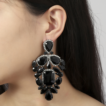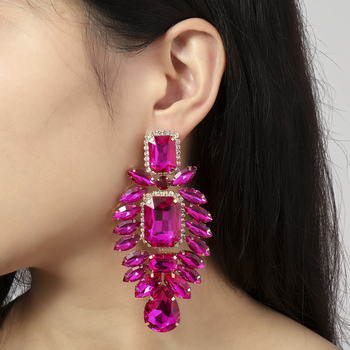 Lüks Bohemia çiçek Dangle küpe kadınlar için geometrik Metal Rhinestone bildirimi takı moda elmas toptan