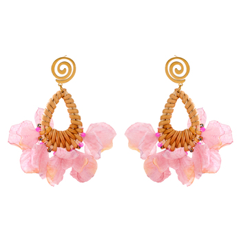 Zarif moda paslanmaz çelik el yapımı takı aksesuarları bahar tarzı pembe kumaş çiçek Dangle küpe